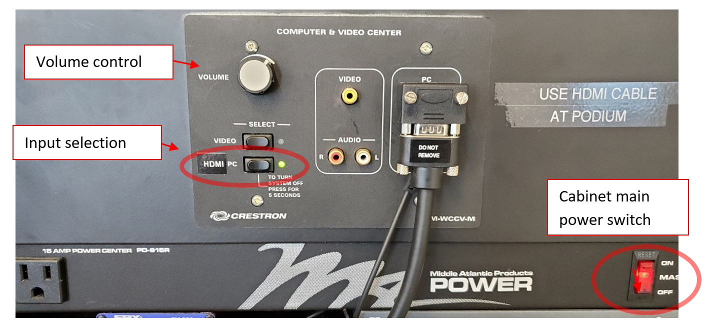 A marked up photo of the AV cabinet in ETB-536