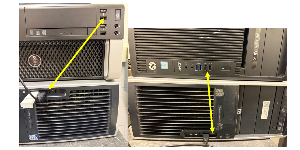 An image showing USB ports on computers for switching the keyboard and mouse